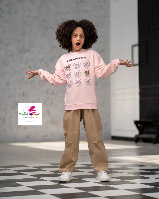 ست دخترانه چاپ و گل برجسته با شلوار گرم بالا کتان
