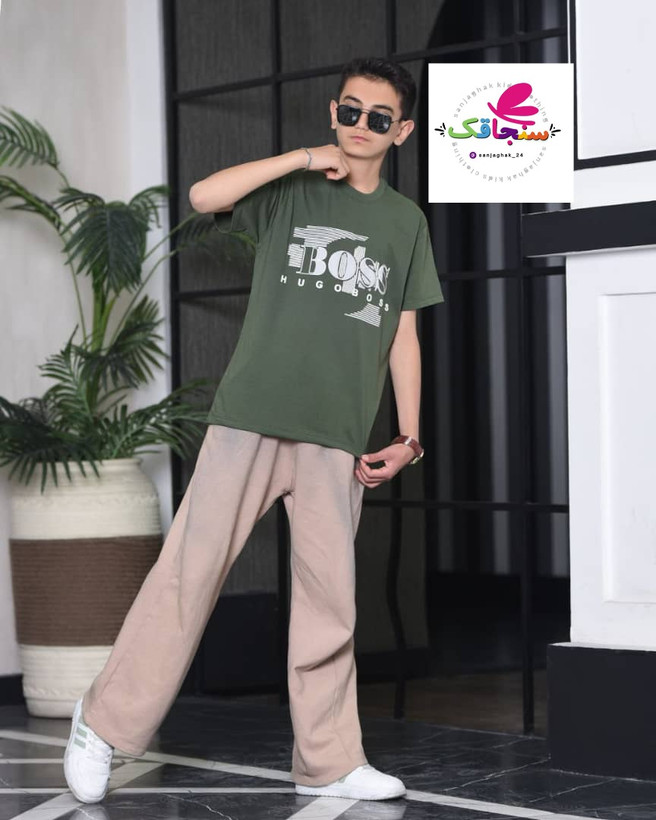 تیشرت تک نخ پنبه پسرانه چاپ برجسته Boss