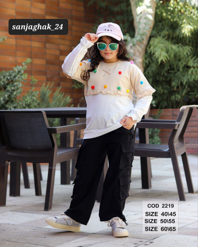 ست دو تیکه دخترانه بلوز شلوار طرح برجسته